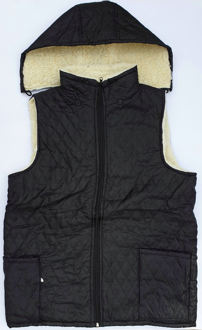 Жилетки, тілогрійки на штучному хутрі з плащівки та з капюшоном на блискавці